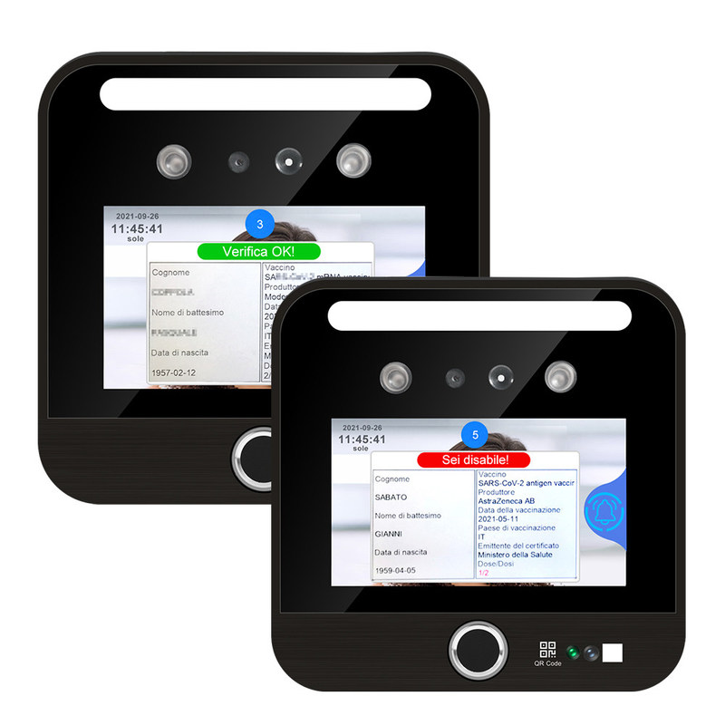 Face Recognition Access Control C19 App Certificates DCC Eu Digital Certificate QR Code Green Pass Scanner Reader wifi portable wireless