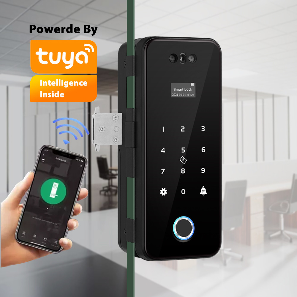 It applys to the Glass door, The smart door lock supports Unlocking method including Face, Fingerprint, password, card, app, key;