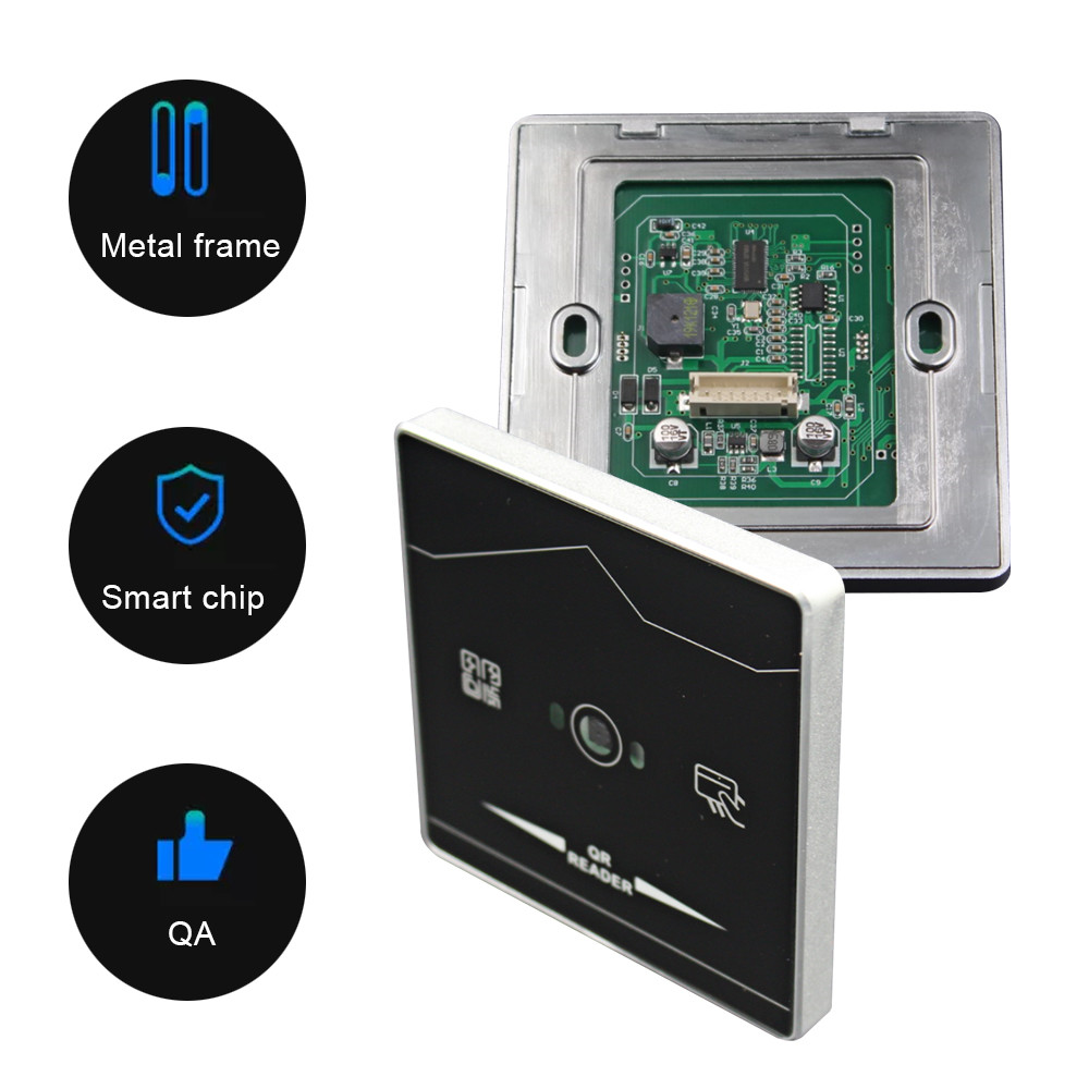 Q1 RFID Card& QR Code reader is with metal case which can be at high quality guarantee. its dimenstion is standard 86 size. it can read the ID(IC Optional) card and read the barcode/QR Code, this kind of reader can be well used for multiple access management.