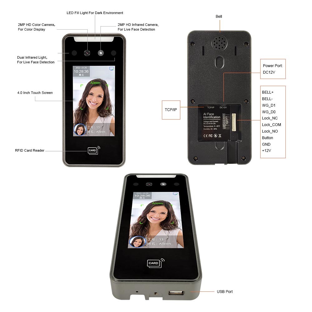 Dynamic face recognition, password, ID/IC card optional |